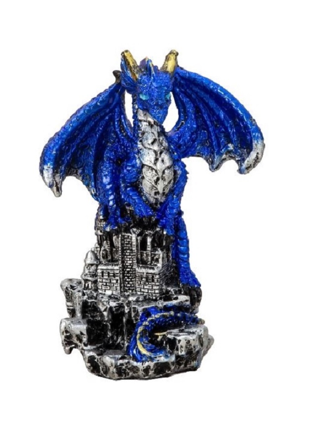 Blauer Drache Handbemalte, schillernd blaue Drachenfigur, um eine schwarze Säule gewickelt. Metallische, farbwechselnde Schuppen mit violetten und grünen Akzenten. Aus hochwertigem Kunstharz mit detailreichen Totenkopf-Basiselementen Höhe: 10,8 cm Art.-Nr. 7514000 - 12,50 € Angaben gemäß EU-Verordnung zur allgemeinen Produktsicherheit |
