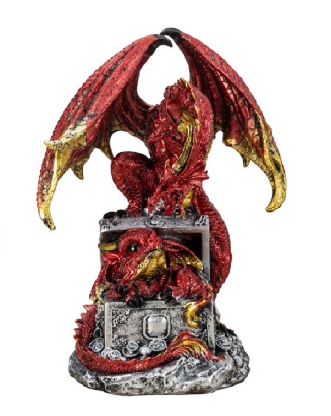 Drache auf Schatztruhe mit Babydrache rot Ein großer mächtiger Drache mit Babydrache in einer Schatztruhe Maße ca.: H: 20,0 cm B: 15,0 cm Art.-Nr. 7504020 - 24,50 € Angaben gemäß EU-Verordnung zur allgemeinen Produktsicherheit |