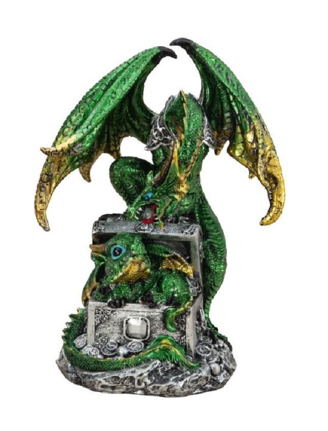 Drache auf Schatztruhe mit Babydrache grün Ein großer mächtiger Drache mit Babydrache in einer Schatztruhe Maße ca.: H: 20,0 cm B: 15,0 cm Art.-Nr. 7504030 - 24,50 € Angaben gemäß EU-Verordnung zur allgemeinen Produktsicherheit |