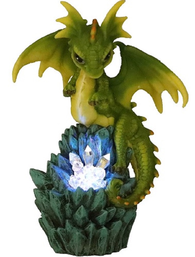 Kristallgipfel - Drachen-Leuchtfigur mit LED Ein grüner Drache mit leuchtender Kristallfigur, aus feinstem Harz gegossen und fachmännisch handbemalt. Mit LED-Beleuchtung und automatischem Farbwechsel. (Incl. 3x Knopfzellen LR 1130) Maße ca.: 18,0 x 13,5 x 9,0 cm Art.-Nr. 7505000 - 23,90 € Angaben gemäß EU-Verordnung zur allgemeinen Produktsicherheit |