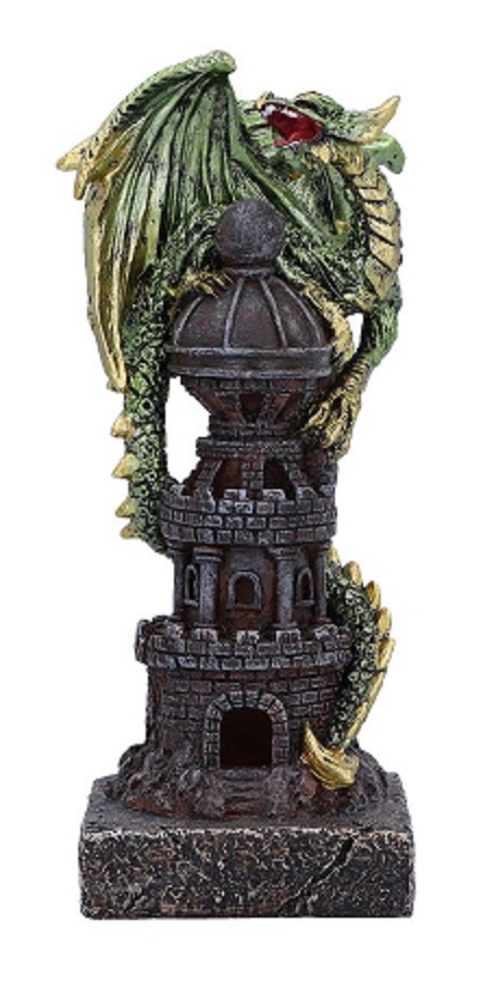 Roter Drachenturm Handbemalte, purpurrote Drachenfigur auf einem schwarzen gotischen Turm. Metallisch-rubinrote Schuppen mit goldenen Flügelakzenten und detaillierter Textur. Hergestellt aus hochwertigem Kunstharz mit mehreren Totenkopf-Elementen auf einem steinähnlichen Sockel Höhe: 9,5 cm Art.-Nr. 7515000 - 12,50 € Angaben gemäß EU-Verordnung zur allgemeinen Produktsicherheit |