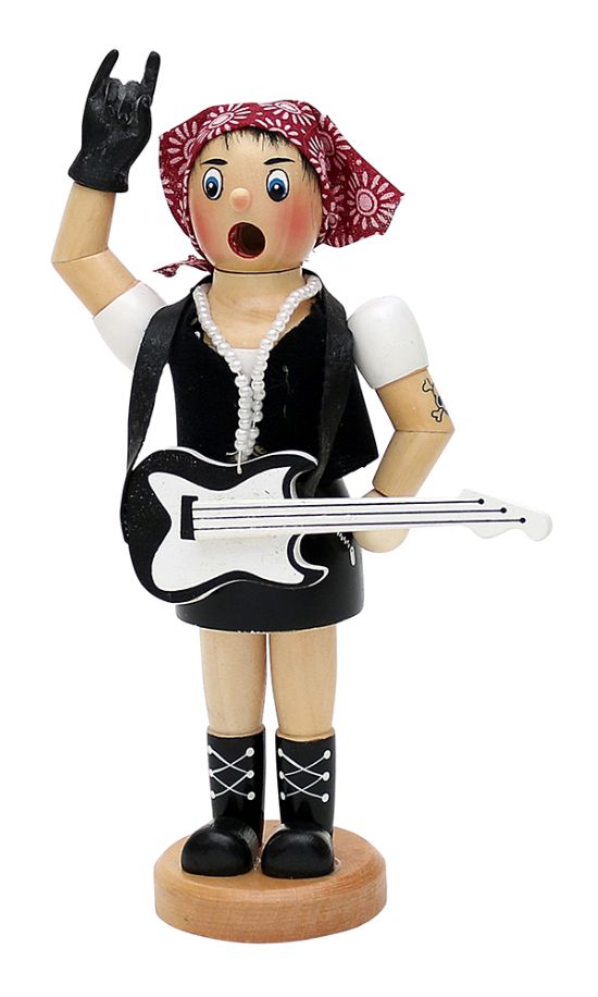 SO 19-1 - Rock-Lady mit Gitarre & Kopftuch Ein großes Räuchermännchen "Rock-Lady" mit Gitarre und Kopftuch. Handgefertigt - H: 19,0 cm Art.-Nr. 5555000 - 29,50 € Angaben gemäß EU-Verordnung zur allgemeinen Produktsicherheit |