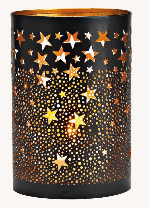 Windlicht Sterne aus Metall Ein dezentes Windlicht mit Sternen. Perfekt für eine gemütliche Weihnachtszeit. Maße: 10,0 x 15,0 x 10,0 cm Art.-Nr. 2203000 - 9,50 € Angaben gemäß EU-Verordnung zur allgemeinen Produktsicherheit |
