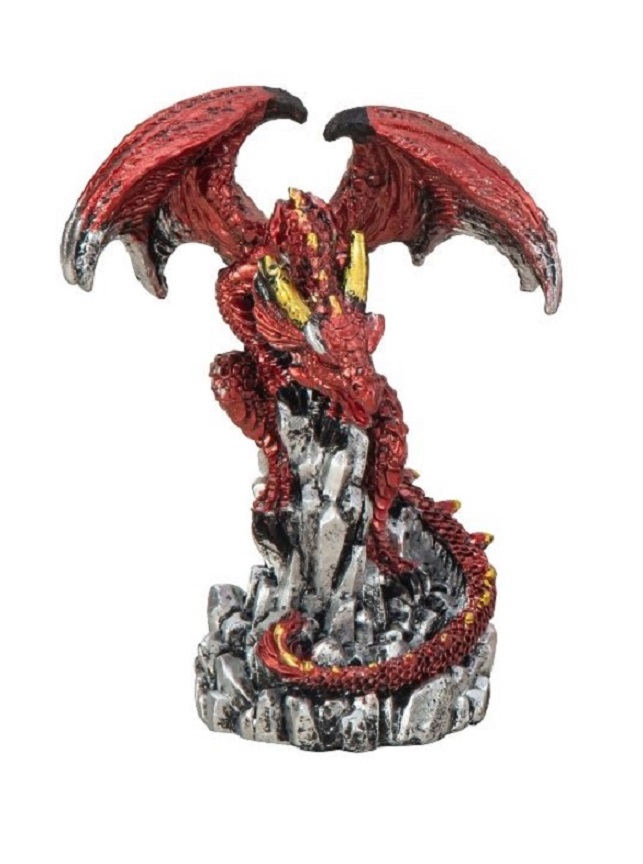 Blick des Wächters Ein Roter Drache auf einer Pyramide mit Glasaugen. Aus feinstem Harz gegossen und fachmännisch handbemalt Höhe: 16,5 cm Art.-Nr. 7519000 - 24,50 € Angaben gemäß EU-Verordnung zur allgemeinen Produktsicherheit |