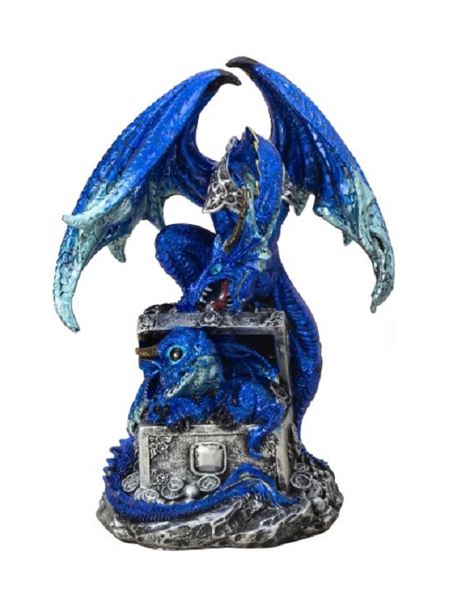 Drache auf Schatztruhe mit Babydrache blau Ein großer mächtiger Drache mit Babydrache in einer Schatztruhe Maße ca.: H: 20,0 cm B: 15,0 cm Art.-Nr. 7504010 - 24,50 € Angaben gemäß EU-Verordnung zur allgemeinen Produktsicherheit |