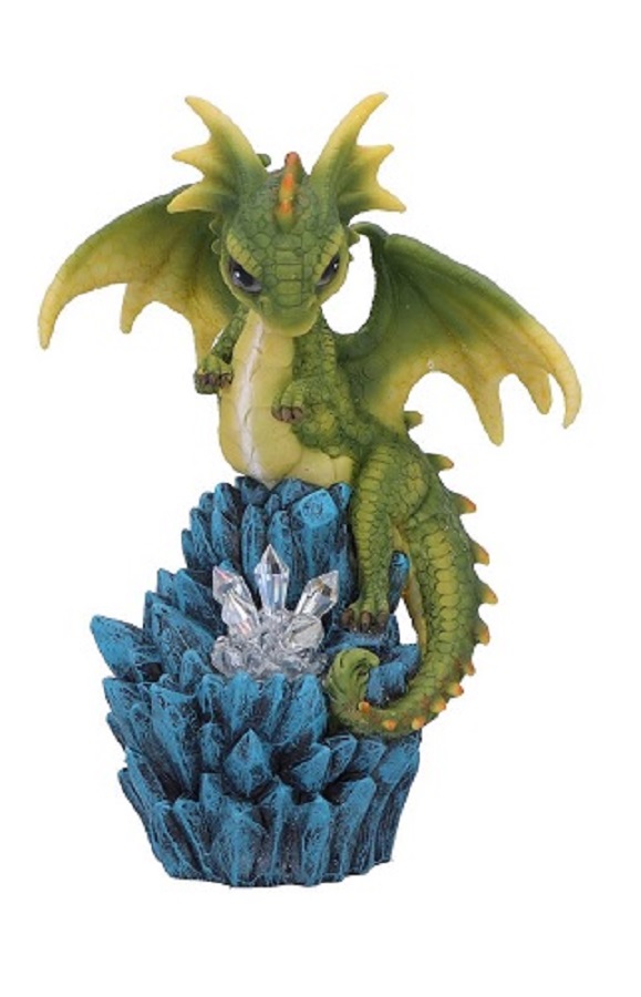 Kristallgipfel - Drachen-Leuchtfigur mit LED Ein grüner Drache mit leuchtender Kristallfigur, aus feinstem Harz gegossen und fachmännisch handbemalt. Mit LED-Beleuchtung und automatischem Farbwechsel. (Incl. 3x Knopfzellen LR 1130) Maße ca.: 18,0 x 13,5 x 9,0 cm Art.-Nr. 7505000 - 23,90 € Angaben gemäß EU-Verordnung zur allgemeinen Produktsicherheit |