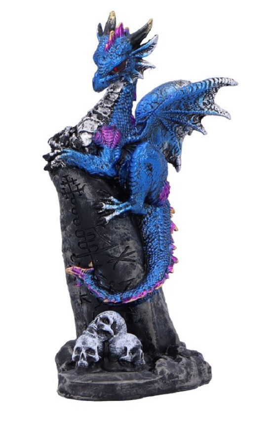 Blauer Drache Handbemalte, schillernd blaue Drachenfigur, um eine schwarze Säule gewickelt. Metallische, farbwechselnde Schuppen mit violetten und grünen Akzenten. Aus hochwertigem Kunstharz mit detailreichen Totenkopf-Basiselementen Höhe: 10,8 cm Art.-Nr. 7514000 - 12,50 € Angaben gemäß EU-Verordnung zur allgemeinen Produktsicherheit |