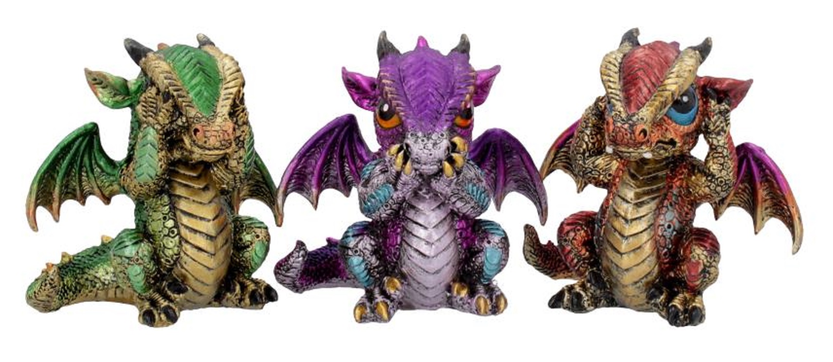 Drei kleine Drachen Dieses Figurentrio stellt Konfuzius' Analekt „Nichts Böses sehen, nichts Böses hören und nichts Böses sagen“ dar. Die drei Weisen sind aus Kunstharz gegossen und sorgfältig handbemalt. Mit leuchtenden Farben und verspielten Ausdrücken sind sie perfekt für jeden Drachenliebhaber. Aus feinstem Harz gegossen und fachmännisch handbemalt Höhe: 8,5 cm Art.-Nr. 7524000 - 24,50 € Angaben gemäß EU-Verordnung zur allgemeinen Produktsicherheit |