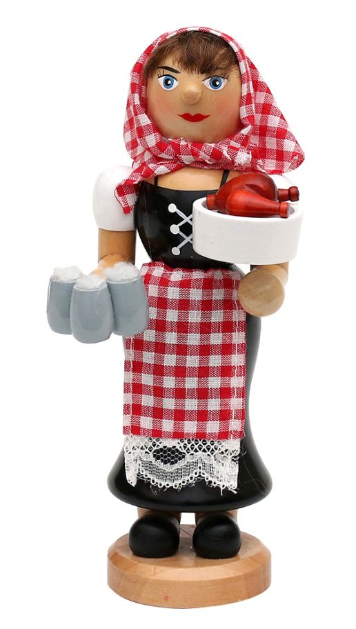 SO 18-1 - Kellnerin mit dampfenden Hähnchen & Bierkrügen Ein großes Räuchermännchen aus der Berufsgruppe "Kellnerin". Handgefertigt - H: 18,0 cm Art.-Nr. 5553000 - 29,50 € Angaben gemäß EU-Verordnung zur allgemeinen Produktsicherheit |