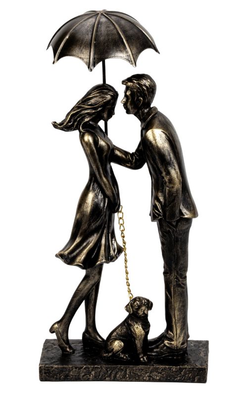 Paar mit Hund und Regenschirm Eine charmante Statue eines Paares mit Hund und Regenschirm (gold/schwarz) Höhe 32,0 cm / Breite 15,0 cm Art.-Nr. 9536000 - 29,90 € Angaben gemäß EU-Verordnung zur allgemeinen Produktsicherheit |